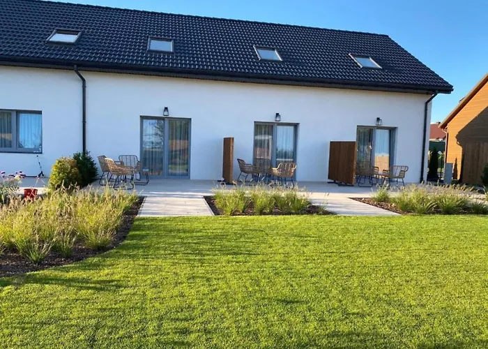 La villa Comfortable, 2-Level Holiday Apartment Grzybowo, situada a 15 minutos a pie del Muelle de la playa de Grzybowo, cuenta con una terraza con vistas al jardín.